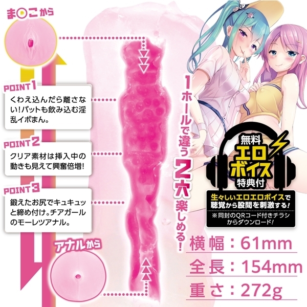 商品番号 :g00558 色 : 種類: 仕様:貫通型 パッケージ:16.0×8.0×7.0cm 本体:全長15.4 最大幅6.1cm 重量:272g 異なる内部構造を備えた2穴仕様の貫通型ホールです♪片側は無数の突起がやさしく包み込み、繊細な感触を演出します!もう一方はやや狭めの構造で、しっかりとしたフィット感が楽しめる設計です♪貫通型ならではの開放感があり、お手入れのしやすさも魅力です!柔らかすぎず、程よい弾力を持つ素材を使用しており、自然な使用感を実現しました♪本体は透明感のあるクリア素材で、内部構造を目でも楽しめるデザインです!手に収まりやすい約272gのサイズで、持ちやすさと安定感のバランスがとれています♪ASMR音声が楽しめる特典チラシも付属し、さらなる臨場感をプラスします!リアルな作り込みと実用性を兼ね備えた貫通型2穴ホールです♪