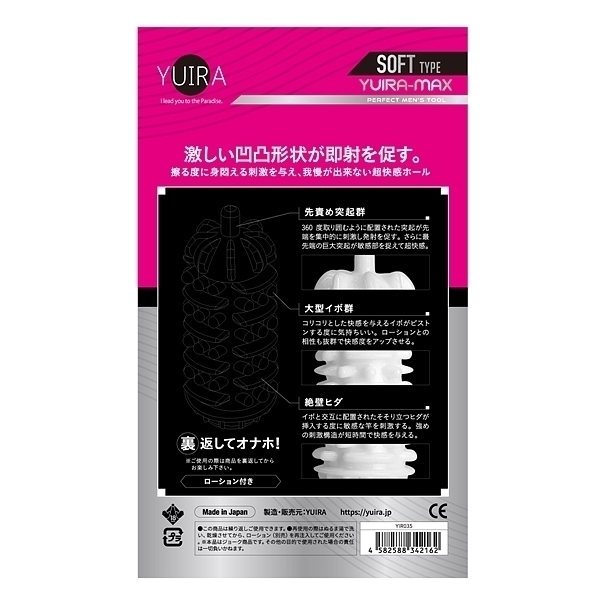 商品番号 :p12673 色 : 種類:type.Y 仕様:非貫通型 パッケージ:19.0×11.5×2.5cm 本体:8.5×11.2×2.5cm 重量:44g裏返してオナホ!あの人気商品とYUIRAのコラボ実現!簡易オナホがソフトバージョンで新登場!ハードと違い、やわらか素材でアナタを優しく包み込みます♪<選べる3タイプ><安心の日本製><ローション付き>激しい凹凸形状が即射を促す、摩る度に身悶える刺激を与え、我慢が出来ない超快感ホール、先責め突起群、360度取り囲むように配置された突起が先端を集中刺激。