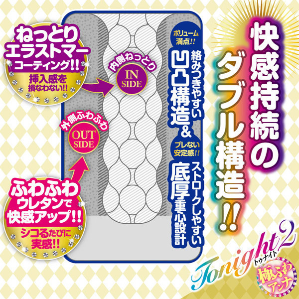 前作「トゥナイト」に続き、肉厚なふわふわウレタンが包み込む極ふわverのオナホ「トゥナイト2」が登場。 ねっとりとした挿入感を演出するエラストマーコーティングに加えて、柔らかなウレタンの2層構造!絡みつく凹凸構造&安定感のある底圧重心設計が快感を高める♪イラストパッケージは人気絵師「みな本」氏◎高品質な日本製、ローション付