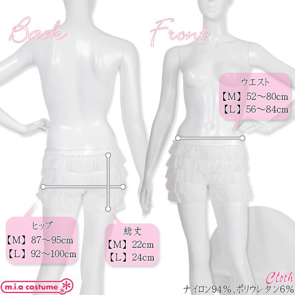 コスチュームの下や制服の下などに♪これならミニスカートの内側が見えても安心ですね。 オールシーズンに使えて便利♪低価格なのに高品質で柔らかい素材ではき心地も抜群!フリルのデザインも可愛いくて何枚も欲しくなりますね♪冬の汗対策や部屋着としてもどうぞ。 ※弱い手洗い可、塩素系漂白剤による漂白不可、アイロン不可、日陰のつり干しが良い、洗濯機で洗濯をされる場合はネットに入れてください。 ![]() |