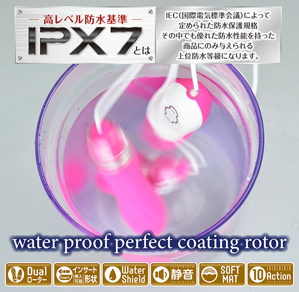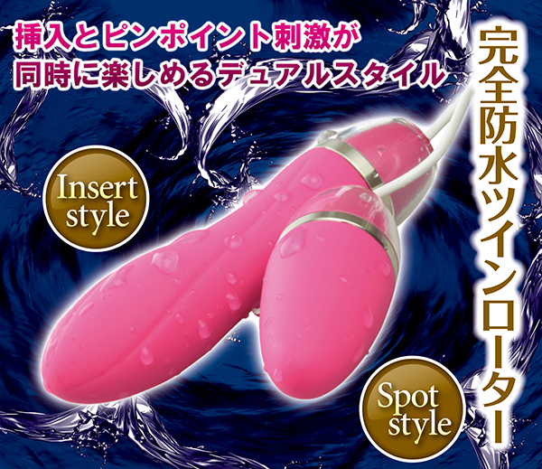 ¥1760(定価¥4400)  商品番号 :p14380  色 :ブラック  種類:Dual  仕様:パッケージ:17.4×10.0×5.4cm 本体:ローター(大)10.7×2.5cm・(小)6.2×2.5cm、リモコン9.0×2.8cm 重量:113g なんと30分間水没させても浸水しないという、国際基準IPX7をクリアした驚異の防水性能を誇るダブルローターです。 挿入して楽しめるインサートスタイルと、ピンポイントに当てて楽しめるスポットスタイルのヘッドは、それぞれ形が異なるのでクリに当てながら挿入したりといった使い方も可能♪振動パターンは10種類でトルクフルな強力振動はきっとクセになること間違いなし!肌触りの良いさらさらマット加工は、女性が心地よく感じること請け合いで、最新技術のウォーターシールド加工が施されているから、本体もコントローラーも水に入れても浸水しませんよ♪こちらはシックなブラックカラーになります。 ※単四電池×2本付属      |
